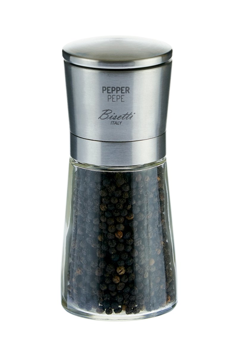 Moulin à poivre en verre et acier inoxydable.