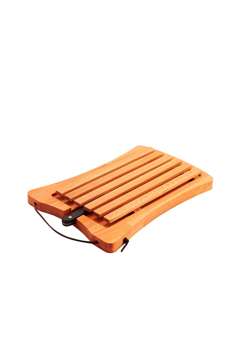 Planche ramasse-miette en hêtre et couteau en acier inoxydable - 36 x 26 x 3 cm