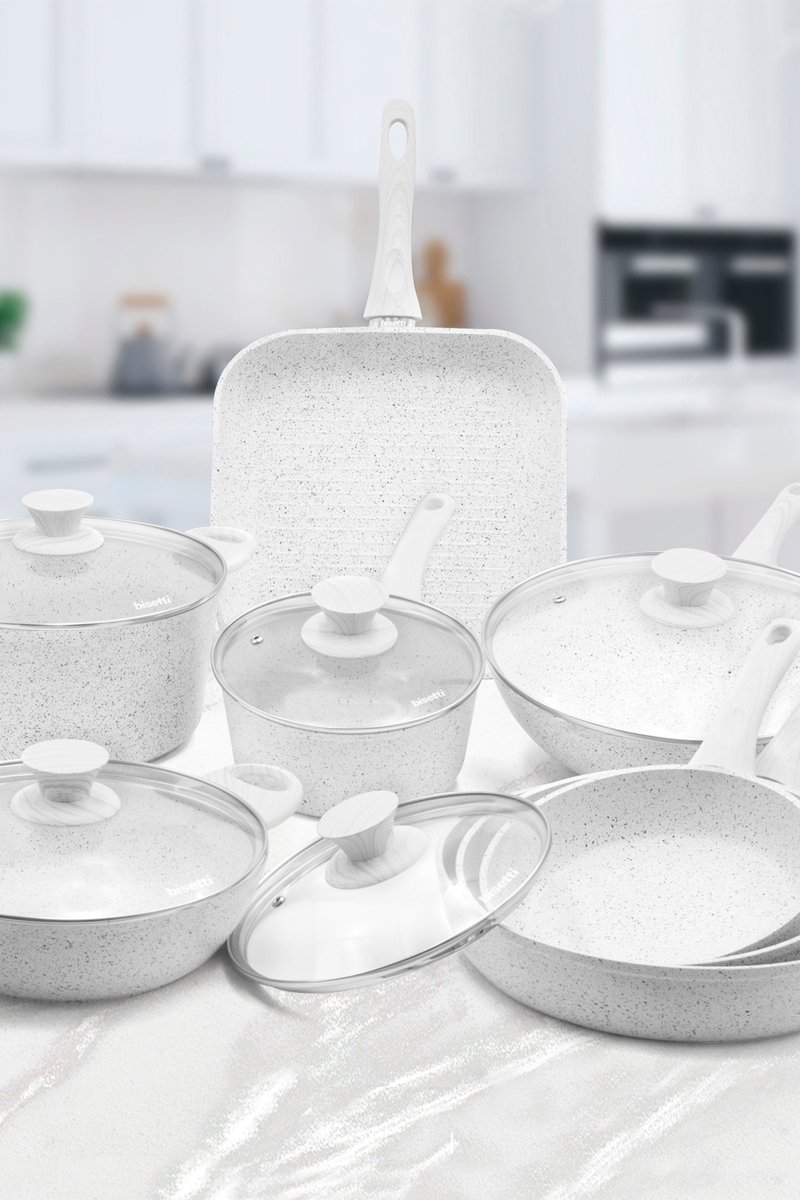 Batterie de cuisine en granit et quartz blanc StoneWhite - 13 pièces