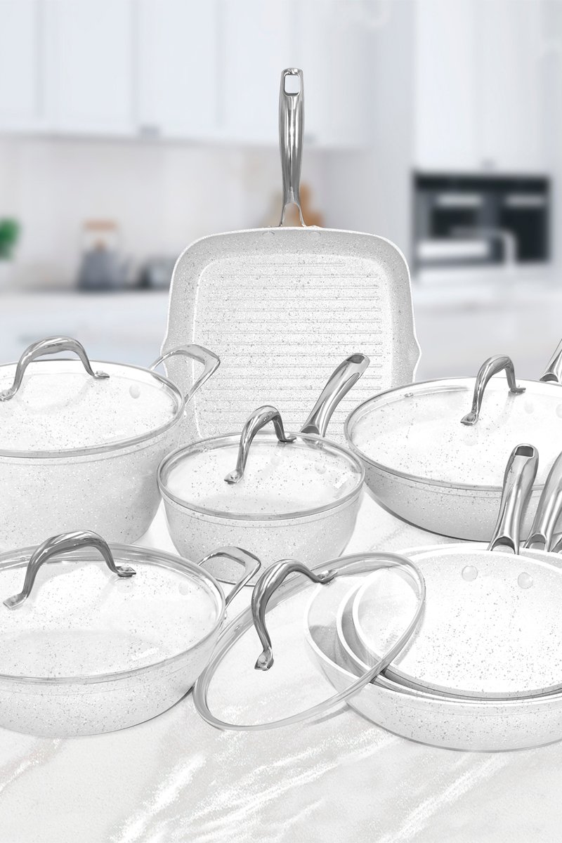 Batterie de cuisine en granit et quartz blanc StoneWhite - 13 pièces