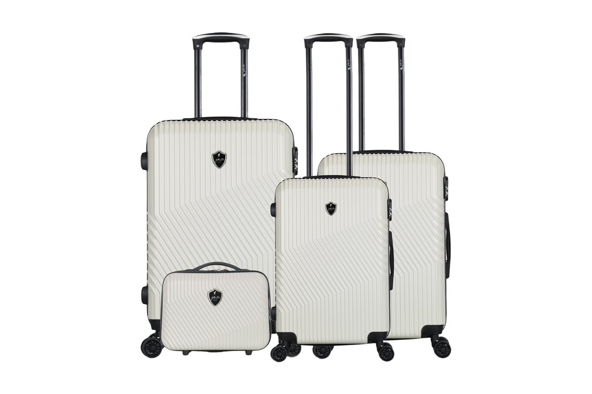 Set de 3 valises (S/M/L) et vanity Peter-C - 55/65/75/30 cm - Noir, beige et argenté