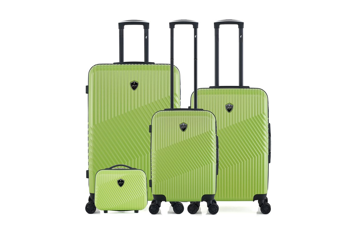 Set de 3 valises (S/M/L) et vanity Peter-C - 55/65/75/30 cm - Noir, vert et argenté