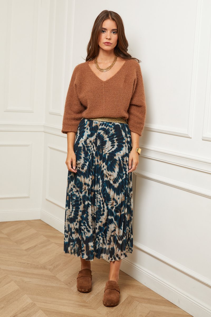 Jupe plissée tie and dye taille haute - Bleu canard