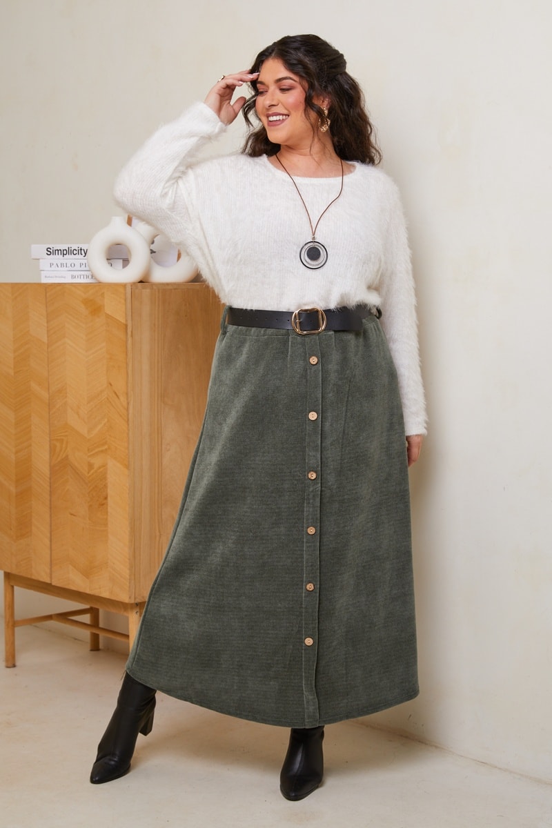 Jupe longue taille haute - Kaki