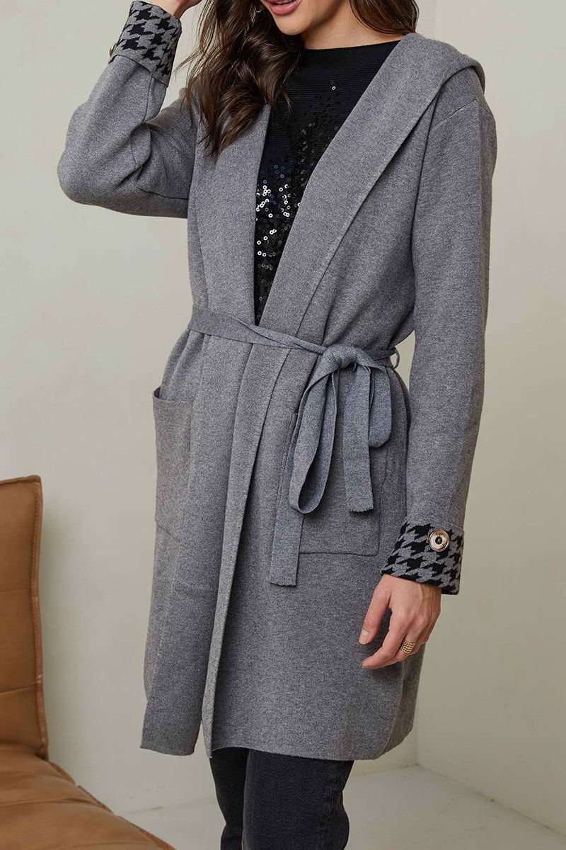 Manches longues boutonnés à motifs pied-de-poule à revers.