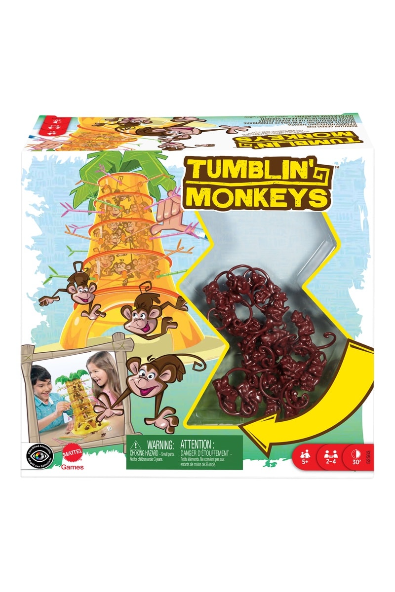 Un jeu d’adresse facile à comprendre et très amusant, qui plaît autant aux enfants qu’aux parents ! Le but du jeu : ne pas faire tomber les singes de l’arbre lorsque c’est votre tour. Placez au hasard les tiges colorées dans l’arbre, puis laissez tomber les singes à l’intérieur du tronc. Lancez le dé et retirez une tige à la fois de la couleur indiquée. Le joueur le plus jeune commence la partie. Si toutes les tiges d’une même couleur ont été retirées et qu’un joueur obtient cette couleur au dé, il peut passer son tour. Attention, au moindre geste maladroit, les singes peuvent dégringoler ! Il faudra alors les ajouter à sa pile. Le joueur qui fait tomber le moins de singes remporte la partie. Il n’est pas nécessaire de savoir lire pour jouer : SOS Ouistiti convient donc parfaitement aux jeunes enfants. Le jeu contient un palmier en plastique jaune translucide permettant d’observer les singes gigoter à mesure qu’ils sont accrochés par la queue sur les tiges en plastique. Il comprend également 30 singes, 30 tiges de différentes couleurs et un dé spécial. Pour 2 à 4 joueurs.