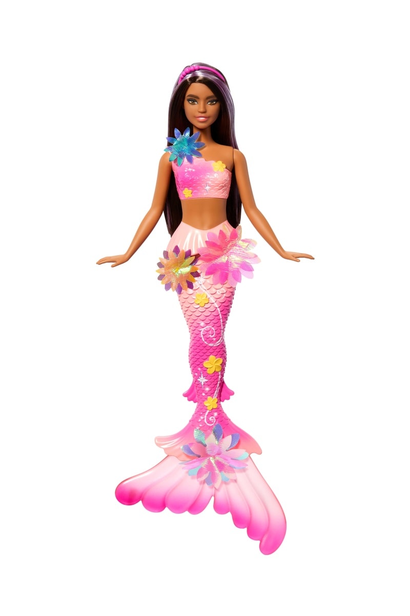 Sirène Fleur Magique Poupée aux longs cheveux bruns Barbie.