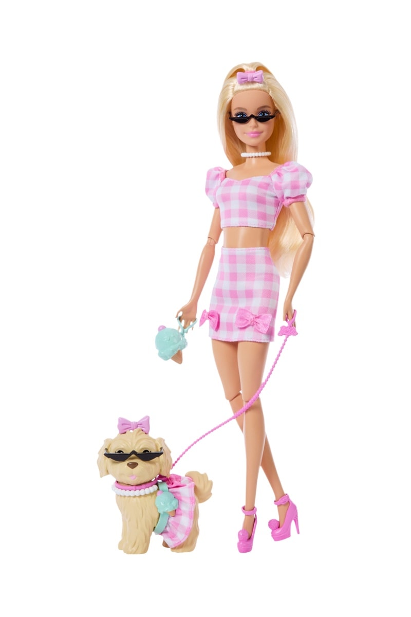 Comprend 10 accessoires pour habiller la poupée et son chien. (chien inclus)