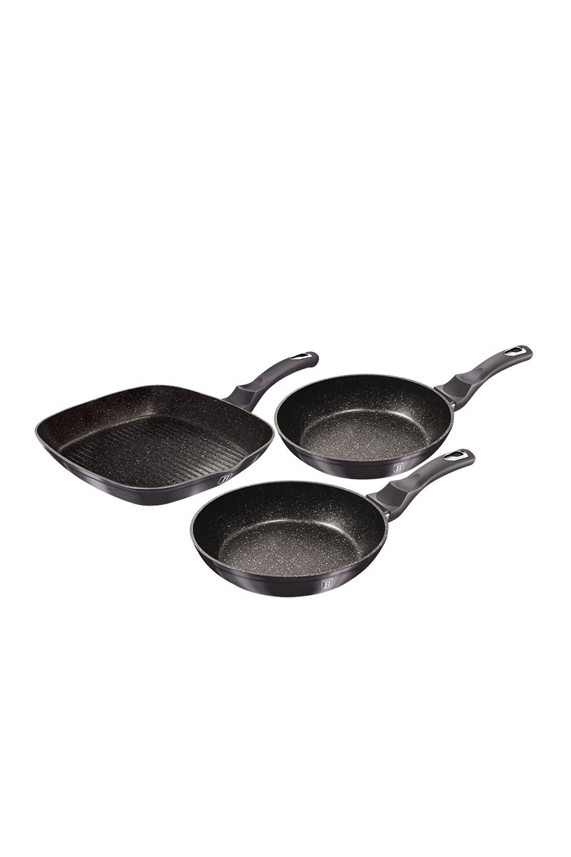 2 poêles et 1 gril revêtement marbre Metallic Line - 20, 24 et 28 cm