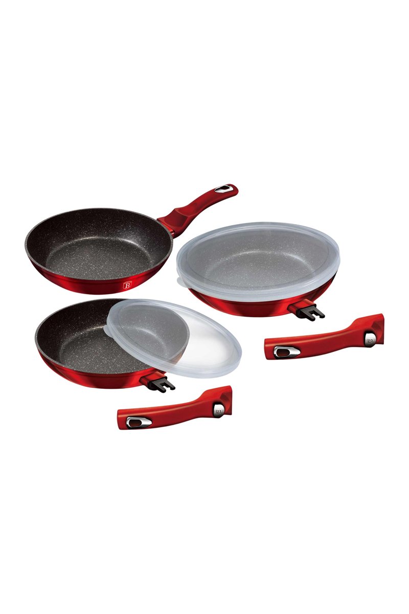 3 poêles à frire revêtement marbre manches amovibles Metallic Line Burgundy Edition - 20 / 24 / 28 cm