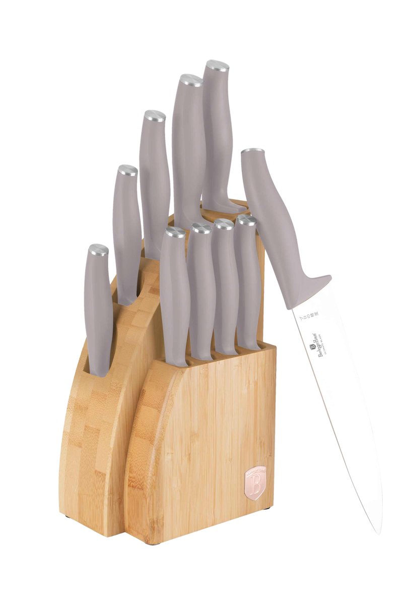 Bloc en bambou de 9 pièces en acier inoxydable Matt Taupe