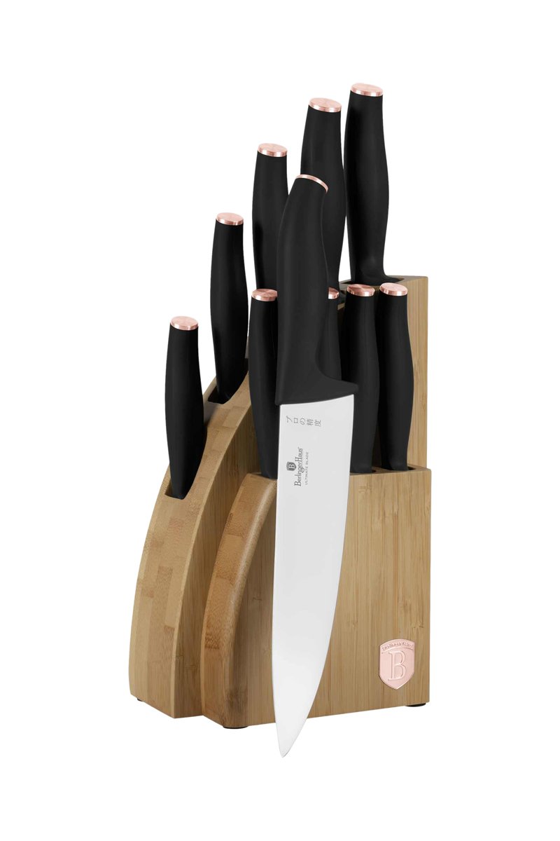 Bloc en bambou de 9 pièces en acier inoxydable Black Rose-Gold
