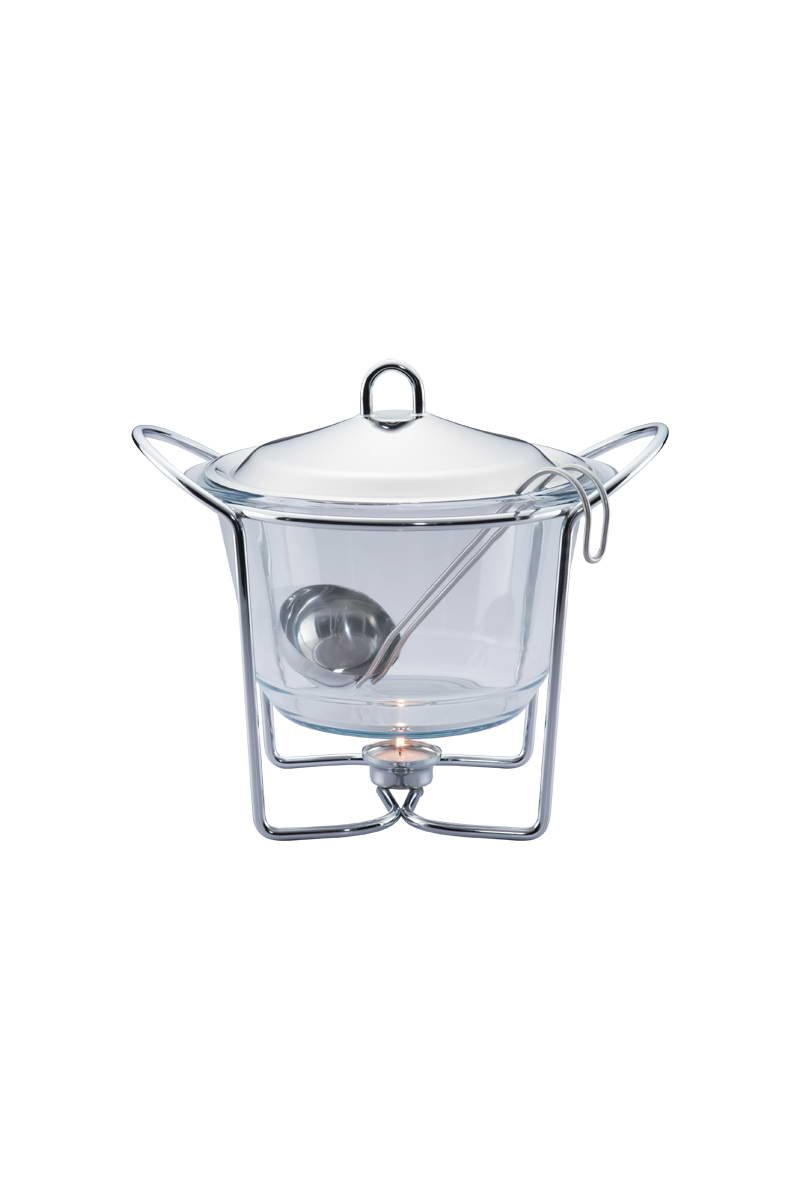 Chauffe soupe en verre et acier inoxydable.