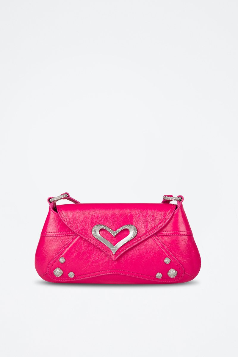 Sac porté épaule en cuir - Fuchsia
