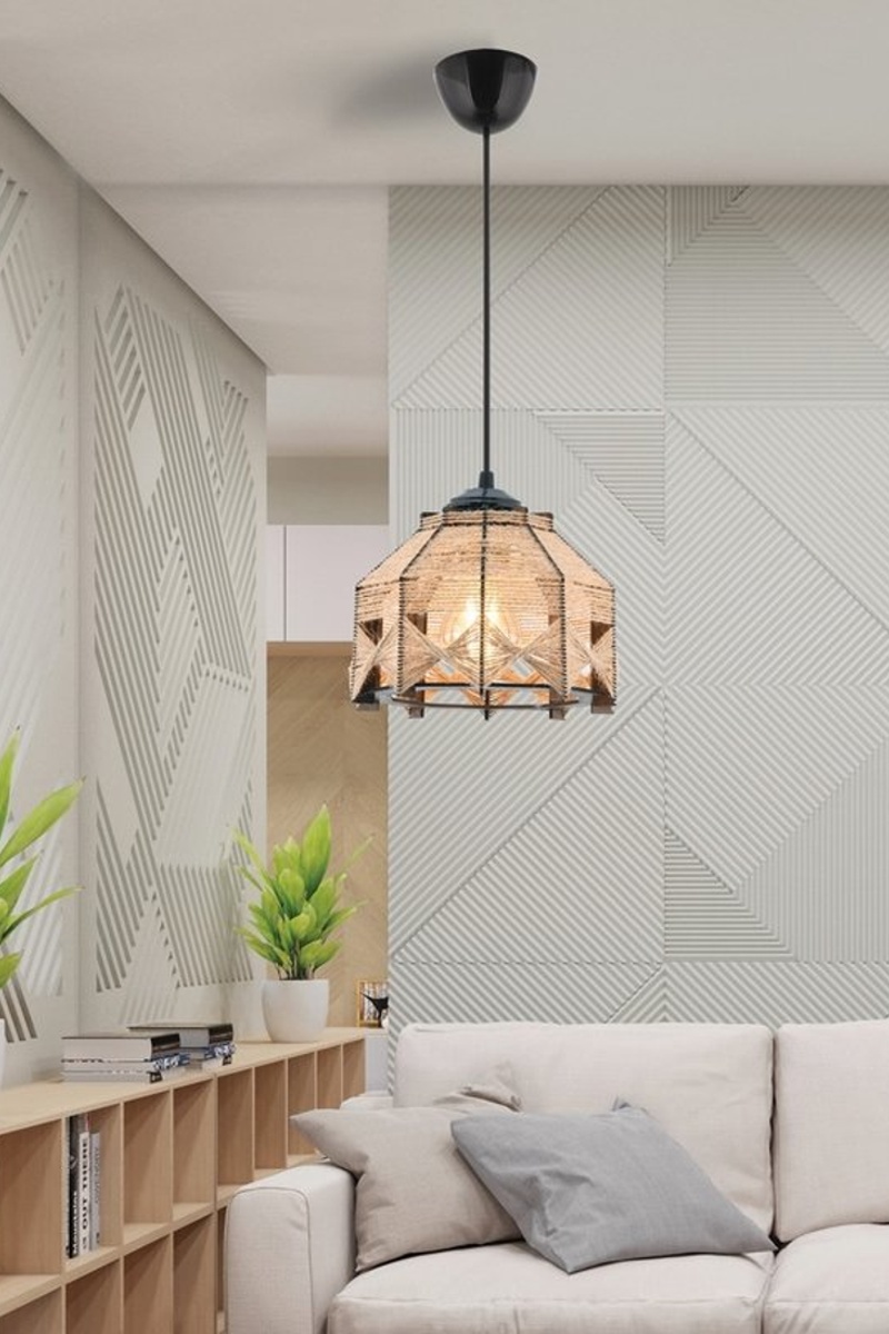 Suspension en bois Jutta Jute - Noir et camel - 45-60 W