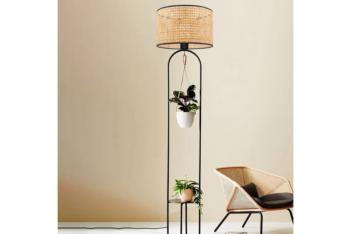 Lampadaire en rotin LED Ayd - Naturel et noir