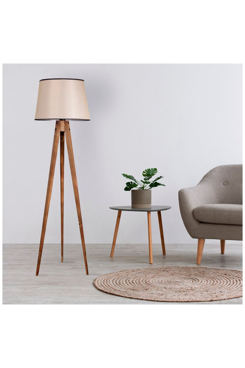 Lampadaire en bois Tripod Ceviz - Crème - 60 W - 160 cm