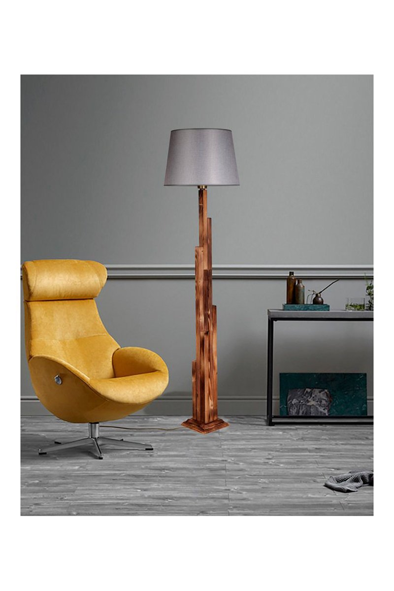 Lampadaire en bois - Naturel et gris - 60 W - 175 cm