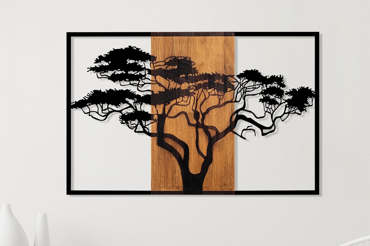 Décoration murale Acacacia - 90 x 58 cm - Naturel et noir