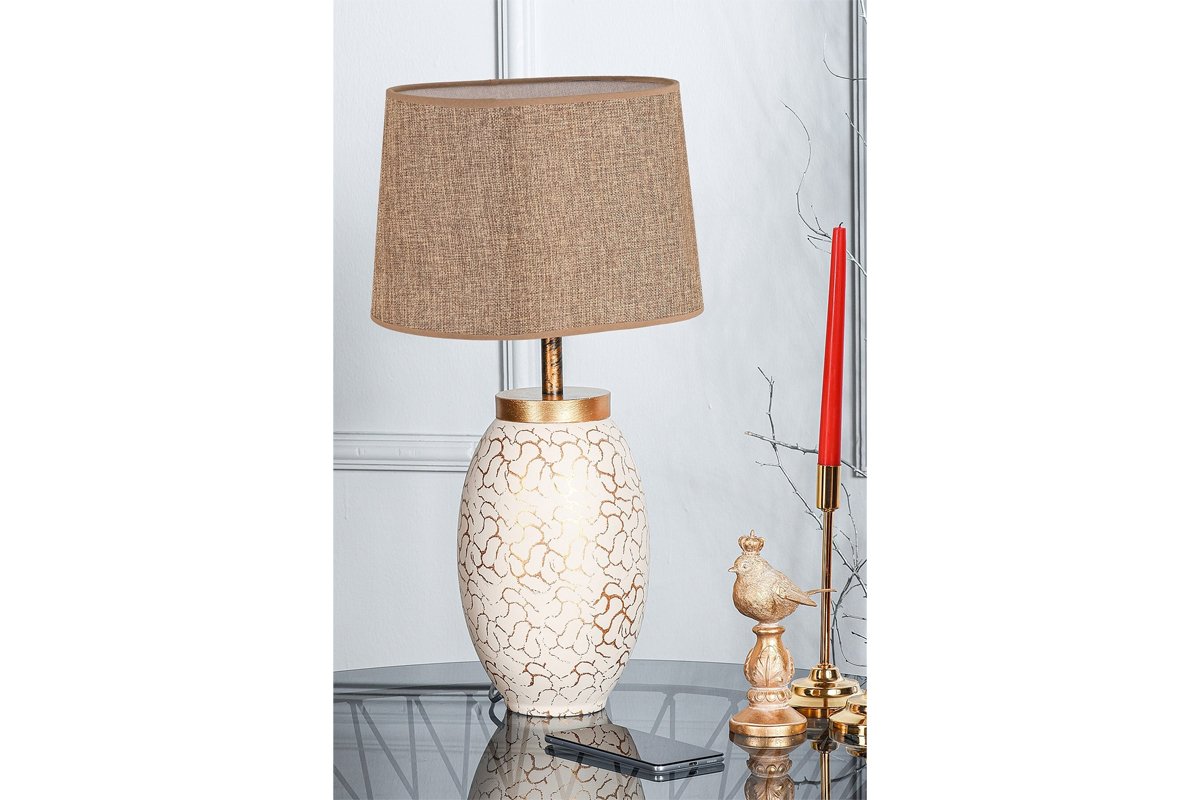 Lampe à poser - Crème et doré - 60 W