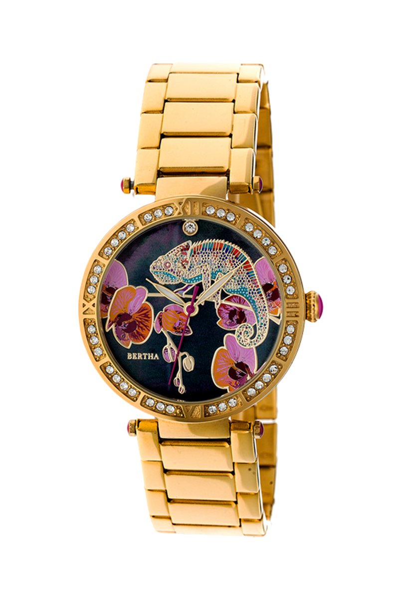 Montre à quartz en acier Camilla Bertha - Doré et violet