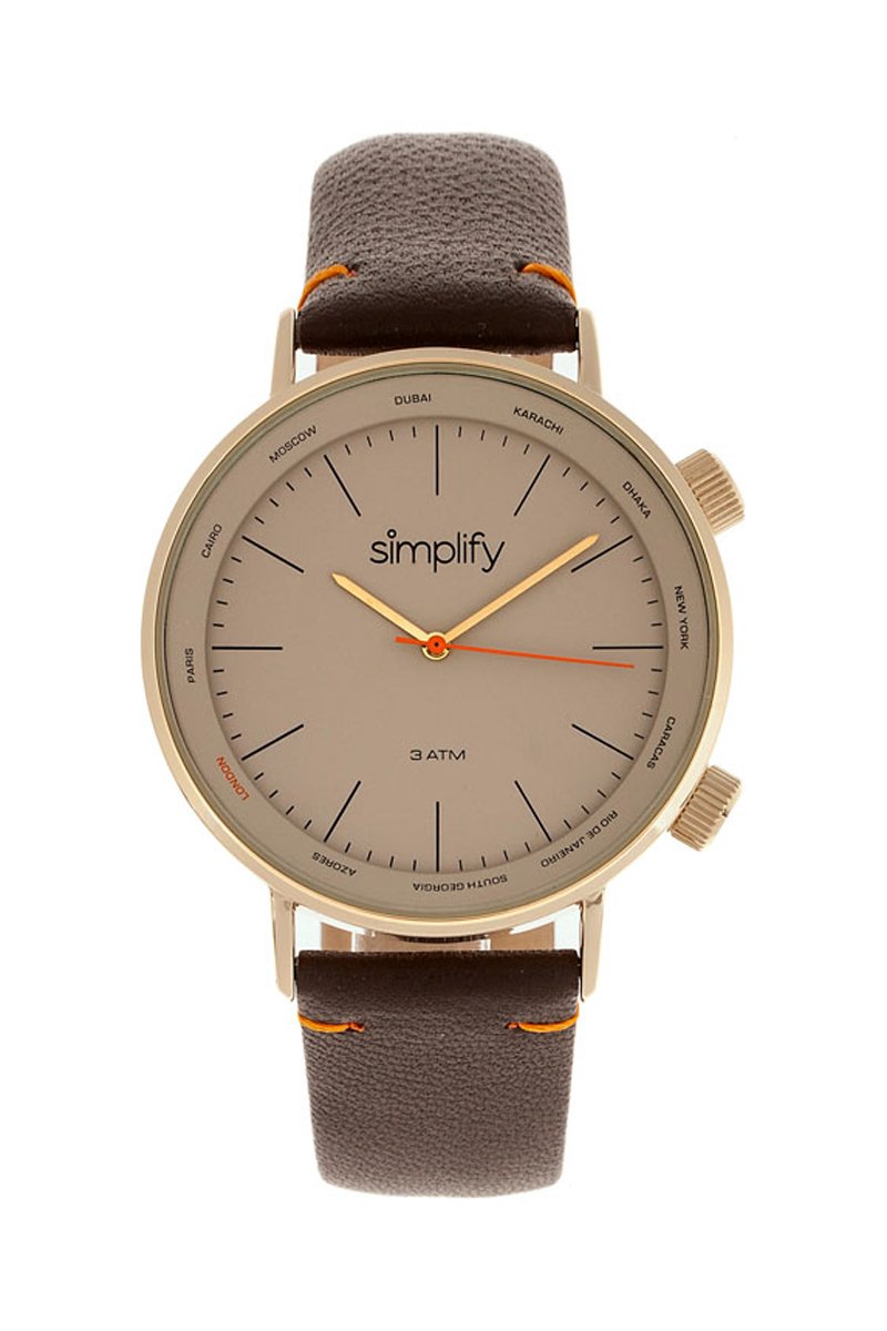 Montre à quartz en cuir The 3300 - Marron foncé et doré