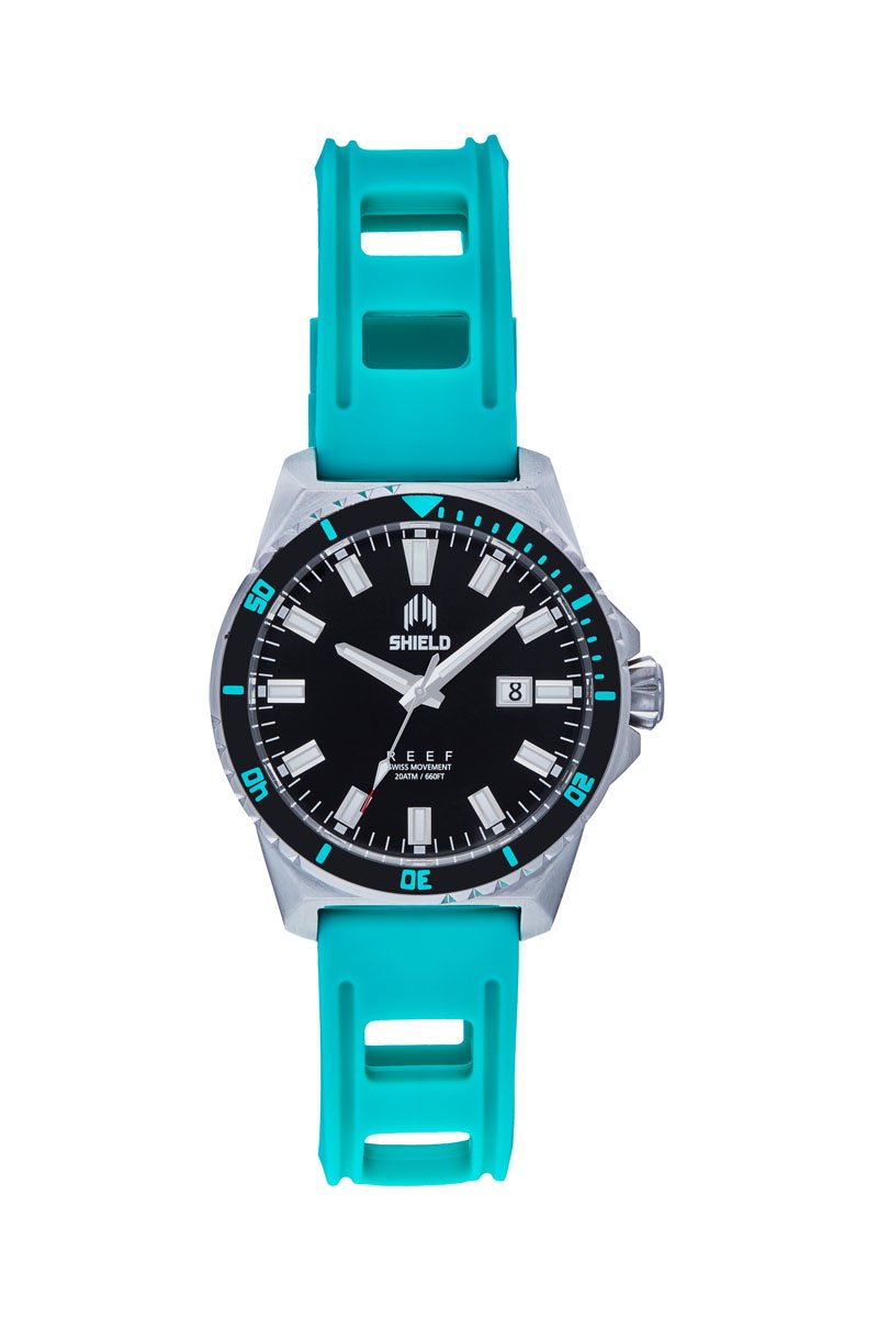 Montre à quartz en caoutchouc Reef - Turquoise et argenté