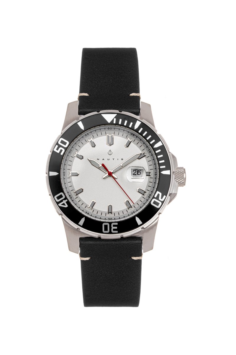 Montre à quartz en cuir Diver Pro 200 - Noir et argenté - Nautis