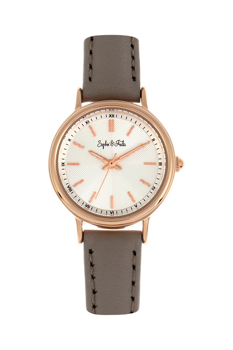 Montre à quartz en cuir Berlin - Taupe et doré rose