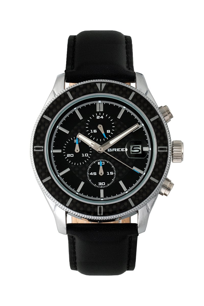 Montre à quartz en cuir Maverick - Chronographe - Noir et argenté