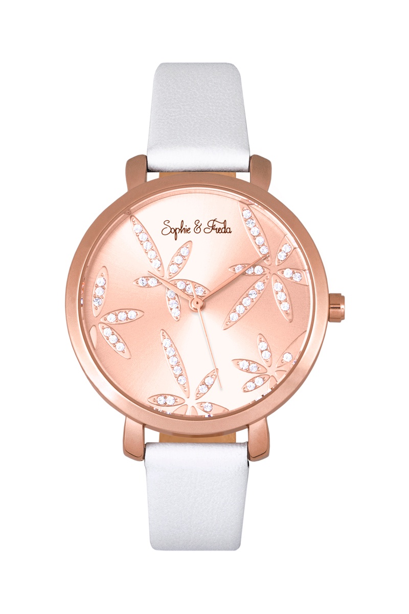 Montre à quartz en cuir Key West - Blanc et doré rose