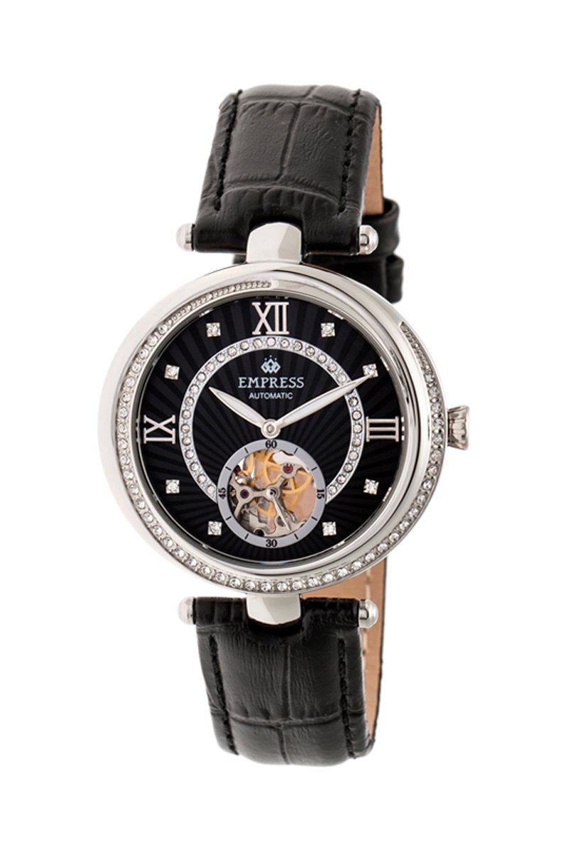 Montre automatique en cuir Stella Empress - Noir et argenté