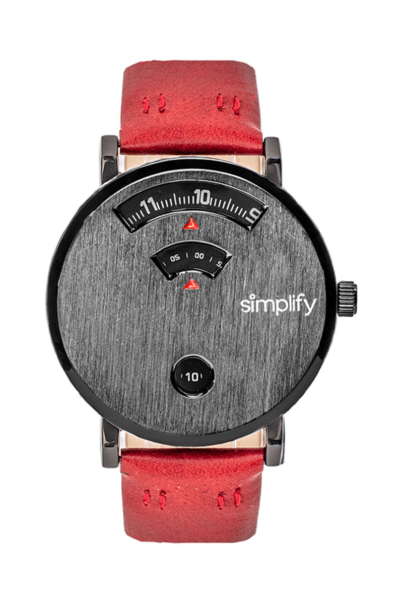 Montre à quartz en cuir The 7000 - Rouge et noir