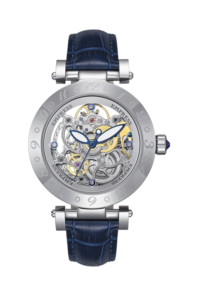 Montre à quartz en cuir Théodora - Argenté et bleu marine