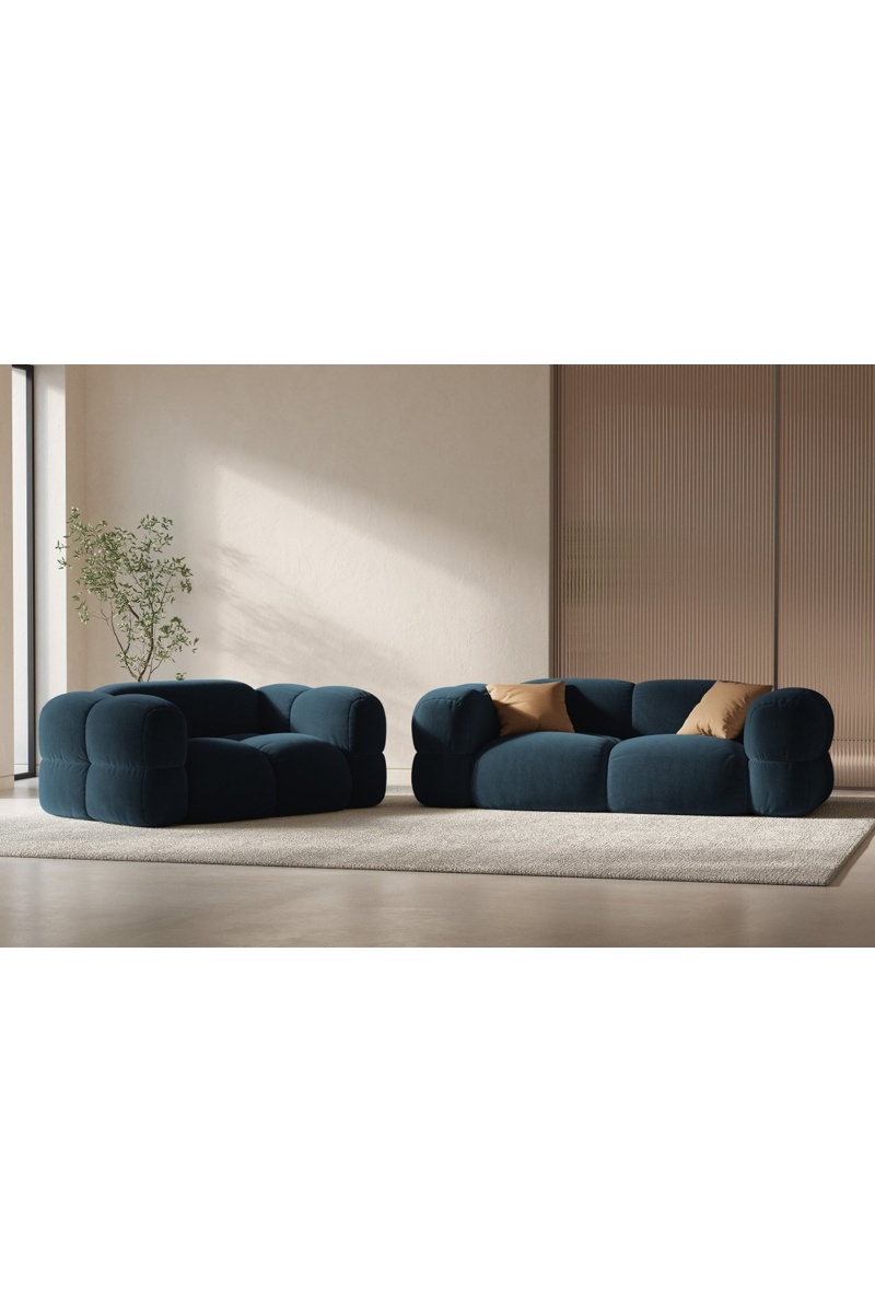 Canapé Loretto - Bleu pétrole - 3 places - Toucher velours