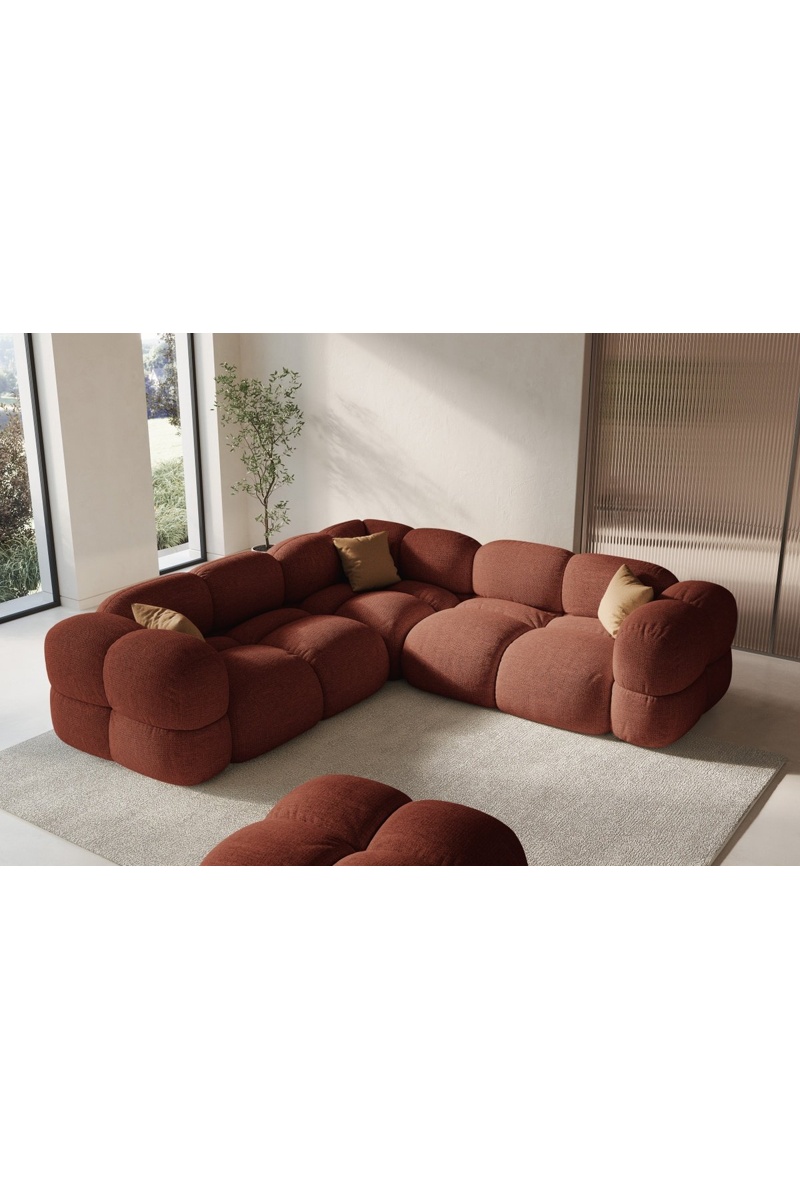 Canapé d’angle symétrique Loretto - Corail - 4 places - En tissu structurel