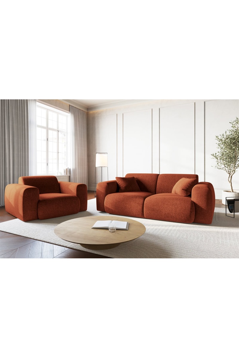 Canapé Nolio - Rouge brique - 2 places - En tissu chenille - Toucher soie