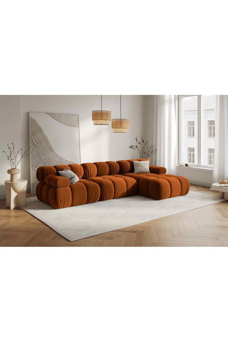 Canapé d'angle droit modulable Tropea - Terracotta - 4 places - Toucher velours