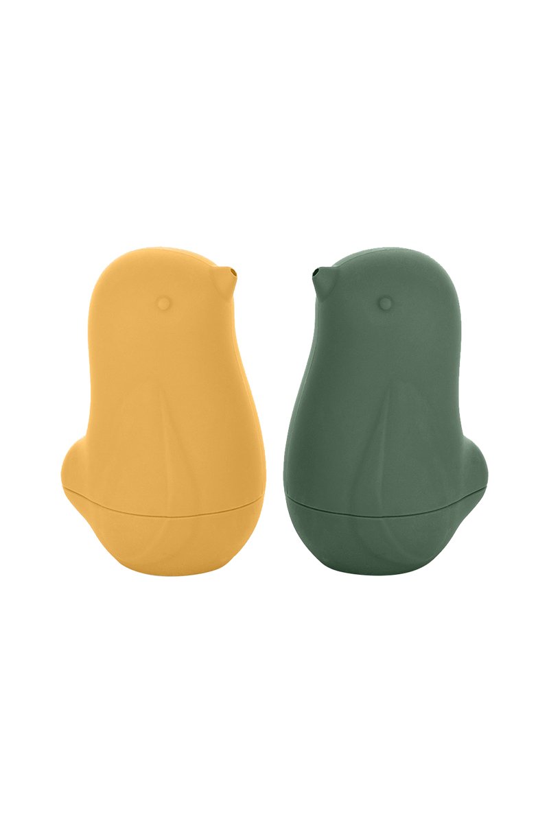 2 jouets de bain en silicone Love Birds - Ocre et vert - A partir de 6 mois