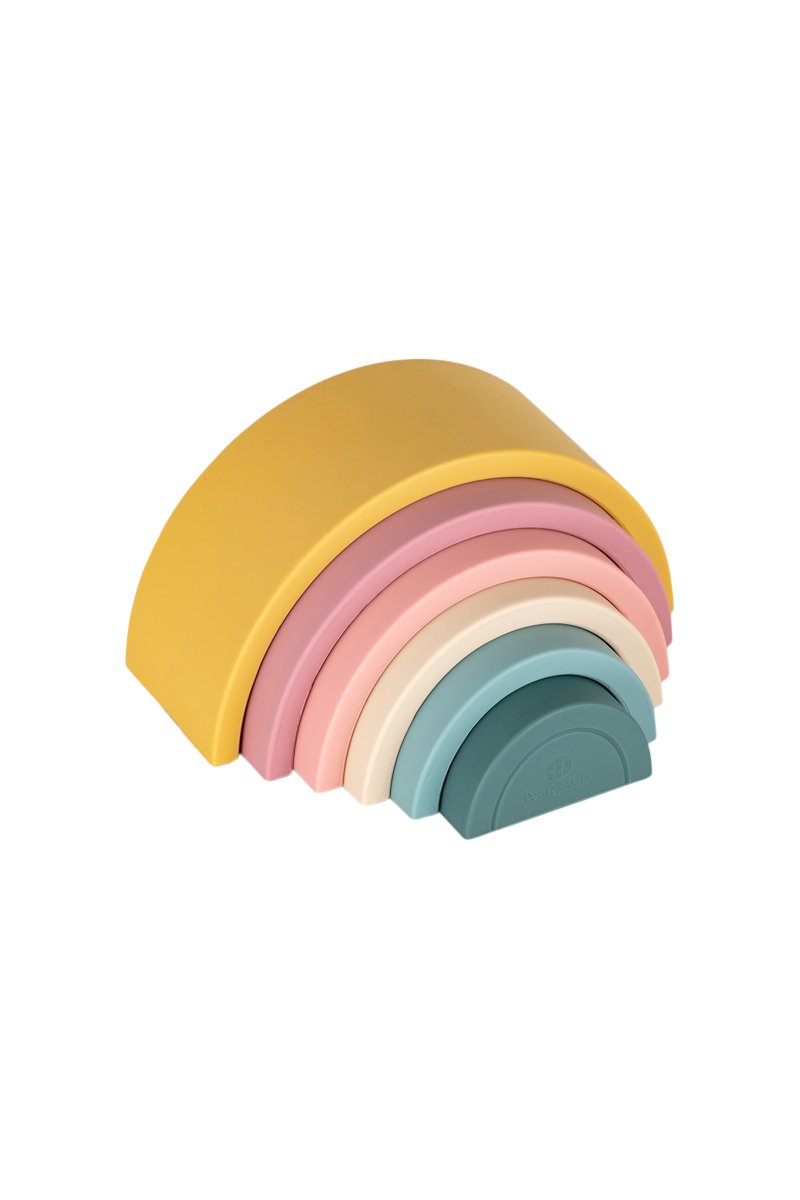 Jouet empilable en silicone Rainbow Intense - Ocre et rose - A partir de 12 mois