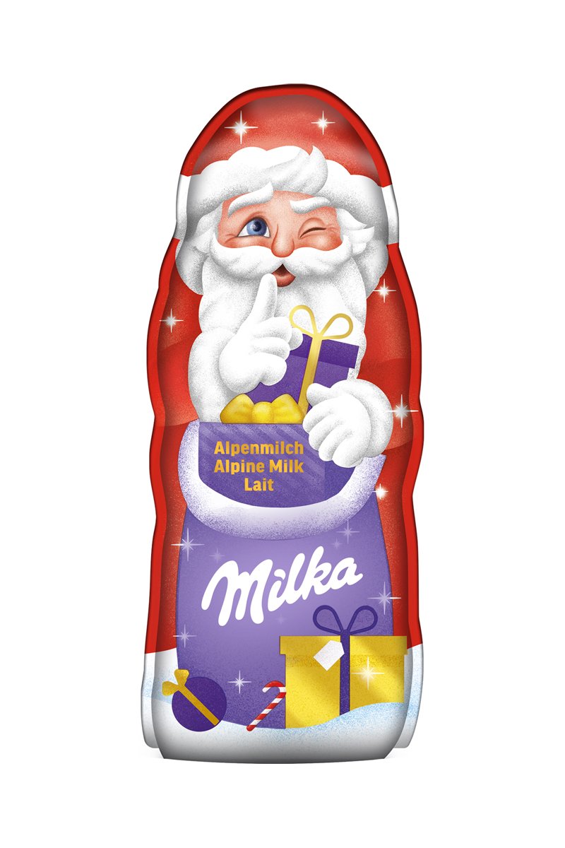 L'iconique Père Noel en chocolat Milka , au bon lait du pays alpin. Idéal à offrir pour les fêtes !