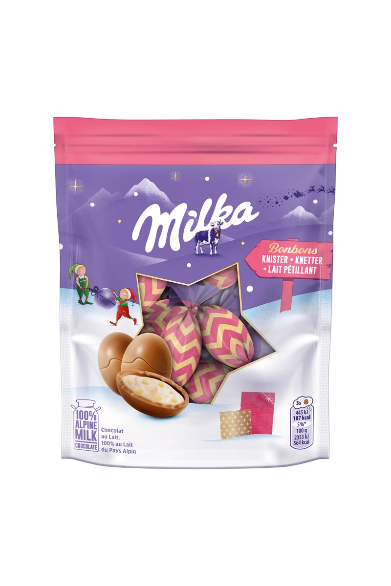 Pendant les fêtes, découvrez les délicieux bonbons chocolatés Milka, une alliance entre la tendresse du chocolat au lait Milka et aux éclats pétillants.