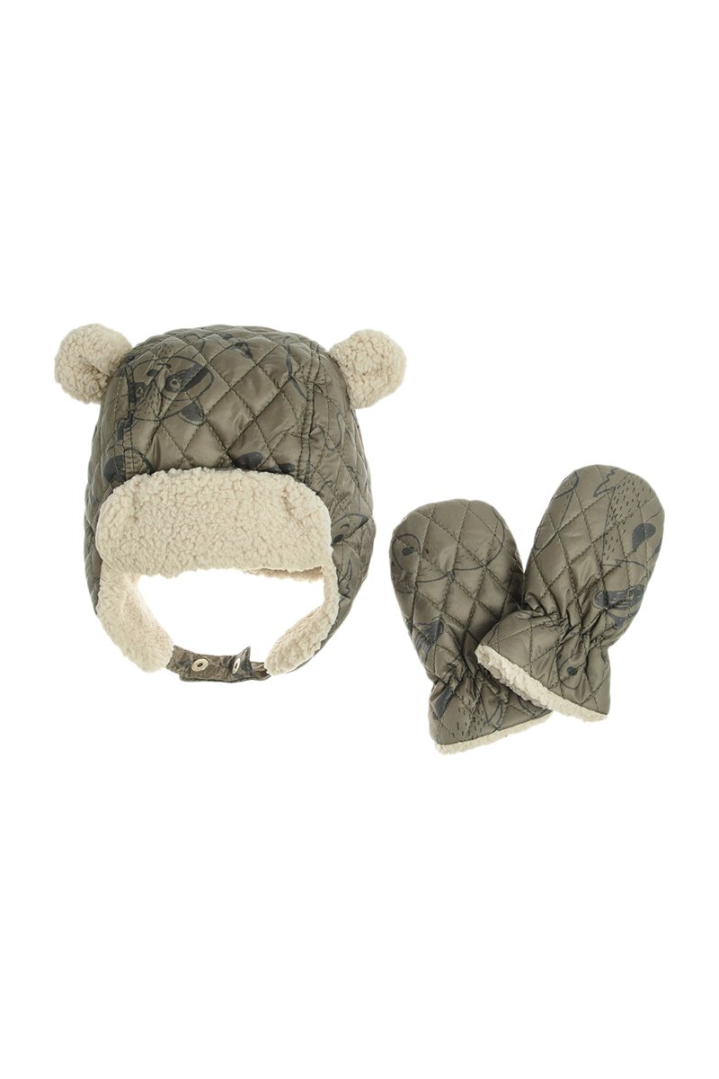 Bonnet aviateur et moufles - Kaki