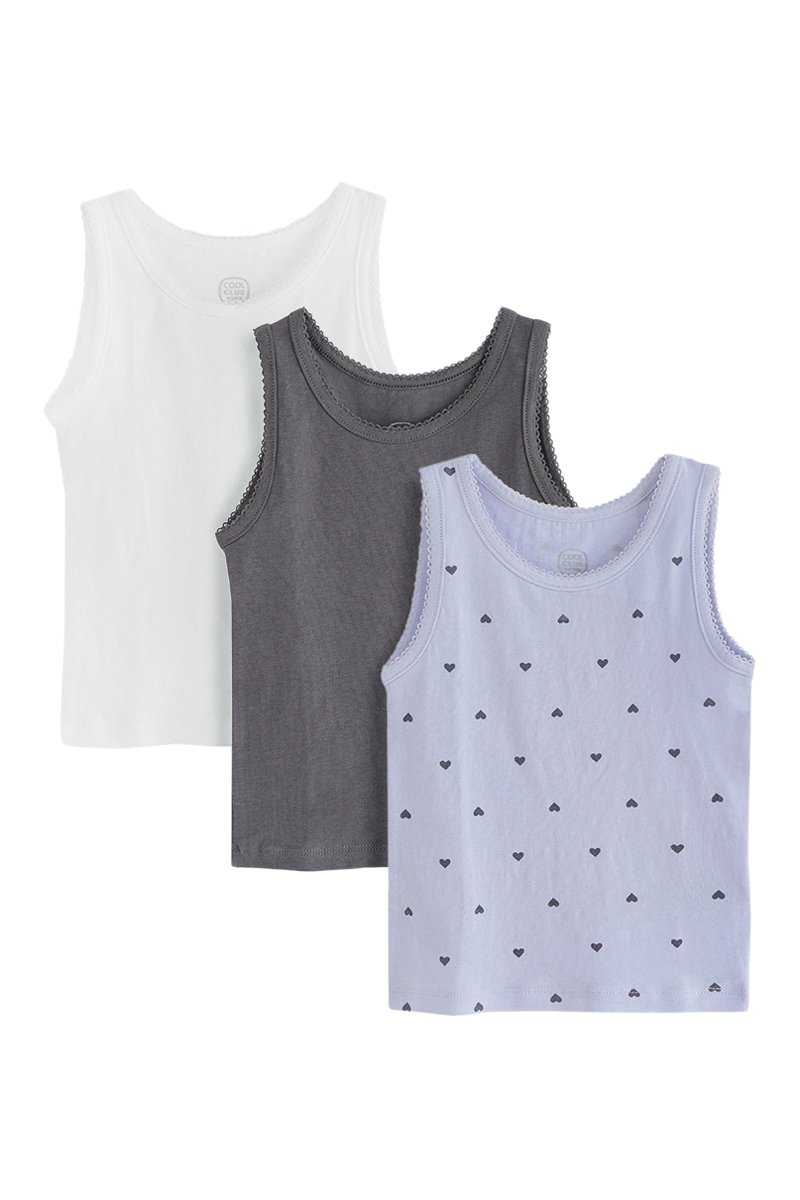 3 débardeurs dont 1 à motifs cœurs.