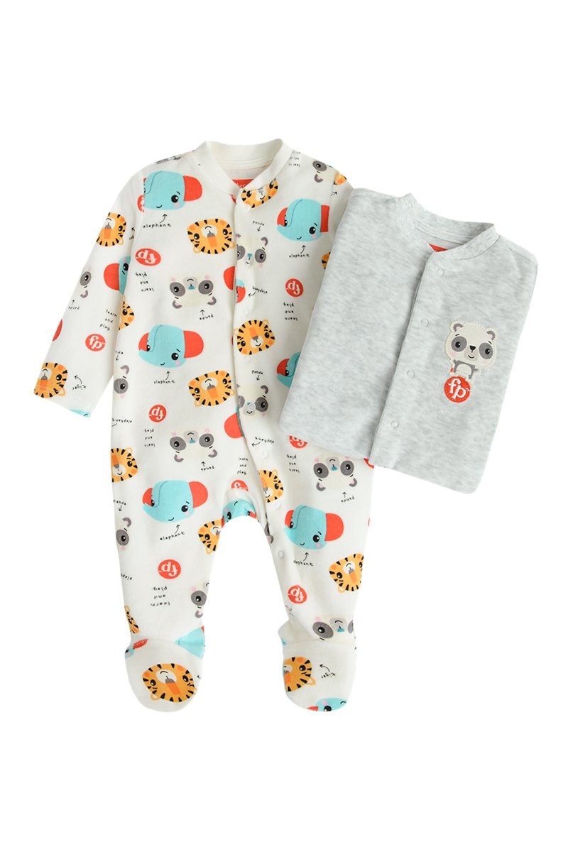 2 grenouillères - Gris clair et blanc