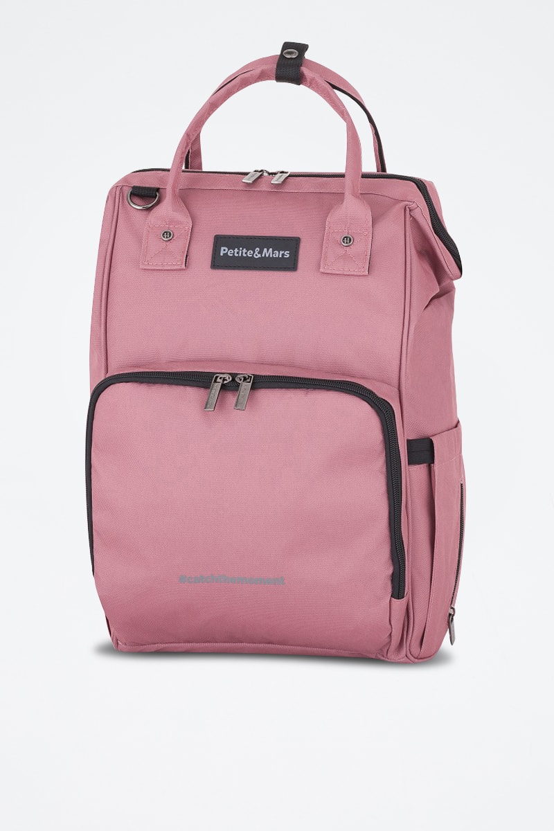4 poches extérieures dont 1 grande poche zippée avec multiples rangements, 2 pour bouteille et 1 zippée pour lingettes mouillées.