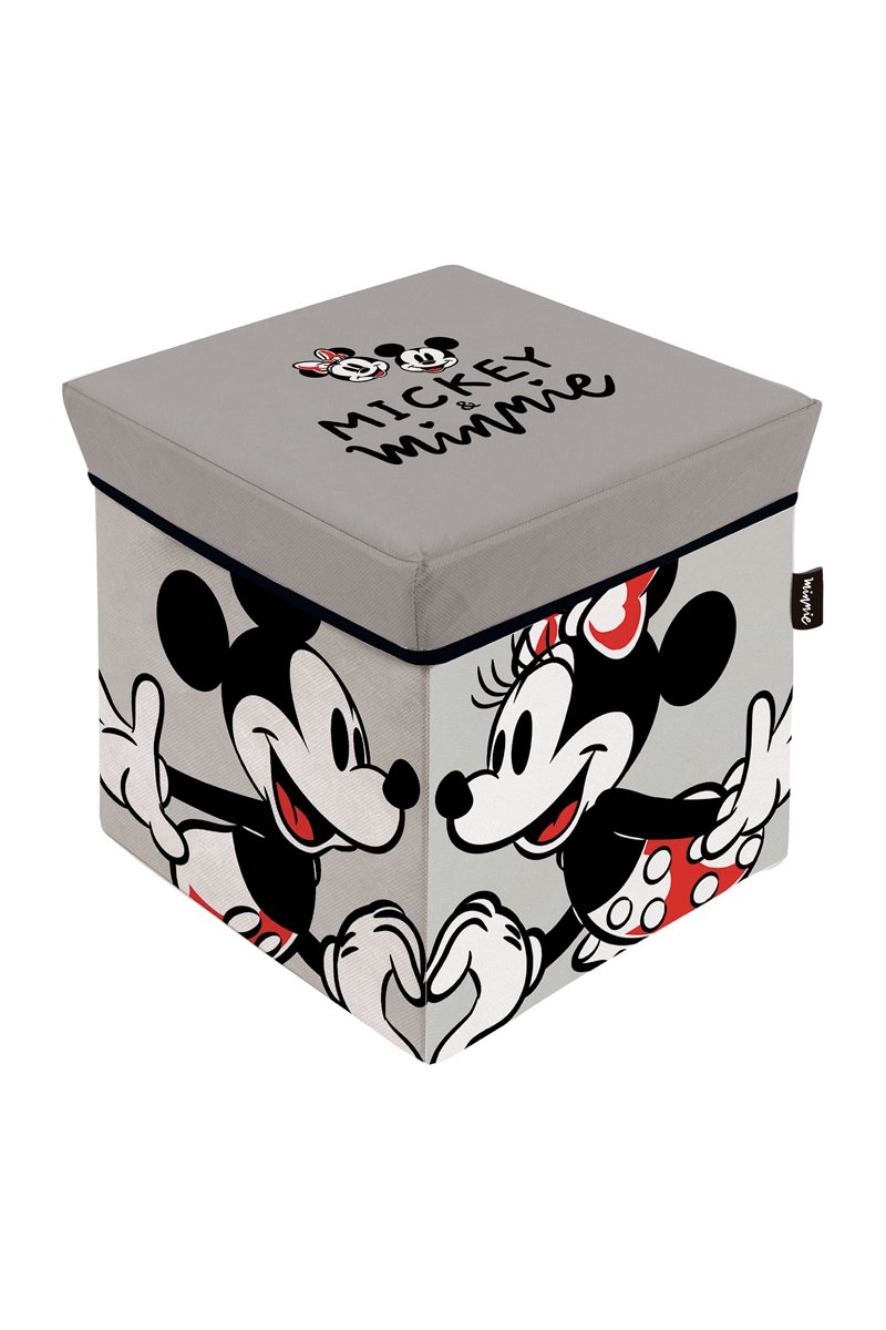 Pouf-coffre Minnie Disney - 30 x 30 x 30 cm - Gris et noir