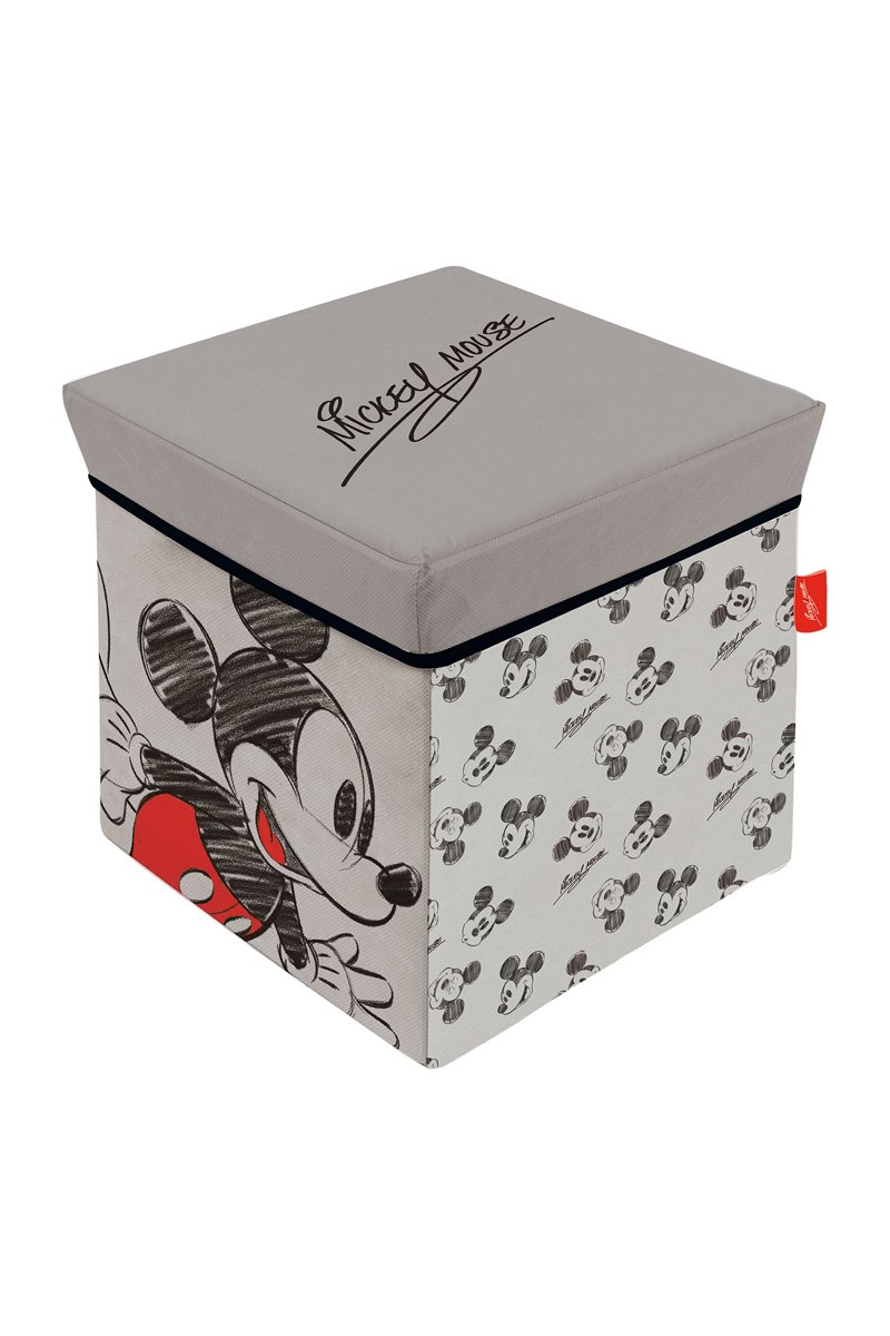 Pouf-coffre Mickey Disney - 30 x 30 x 30 cm - Gris et noir