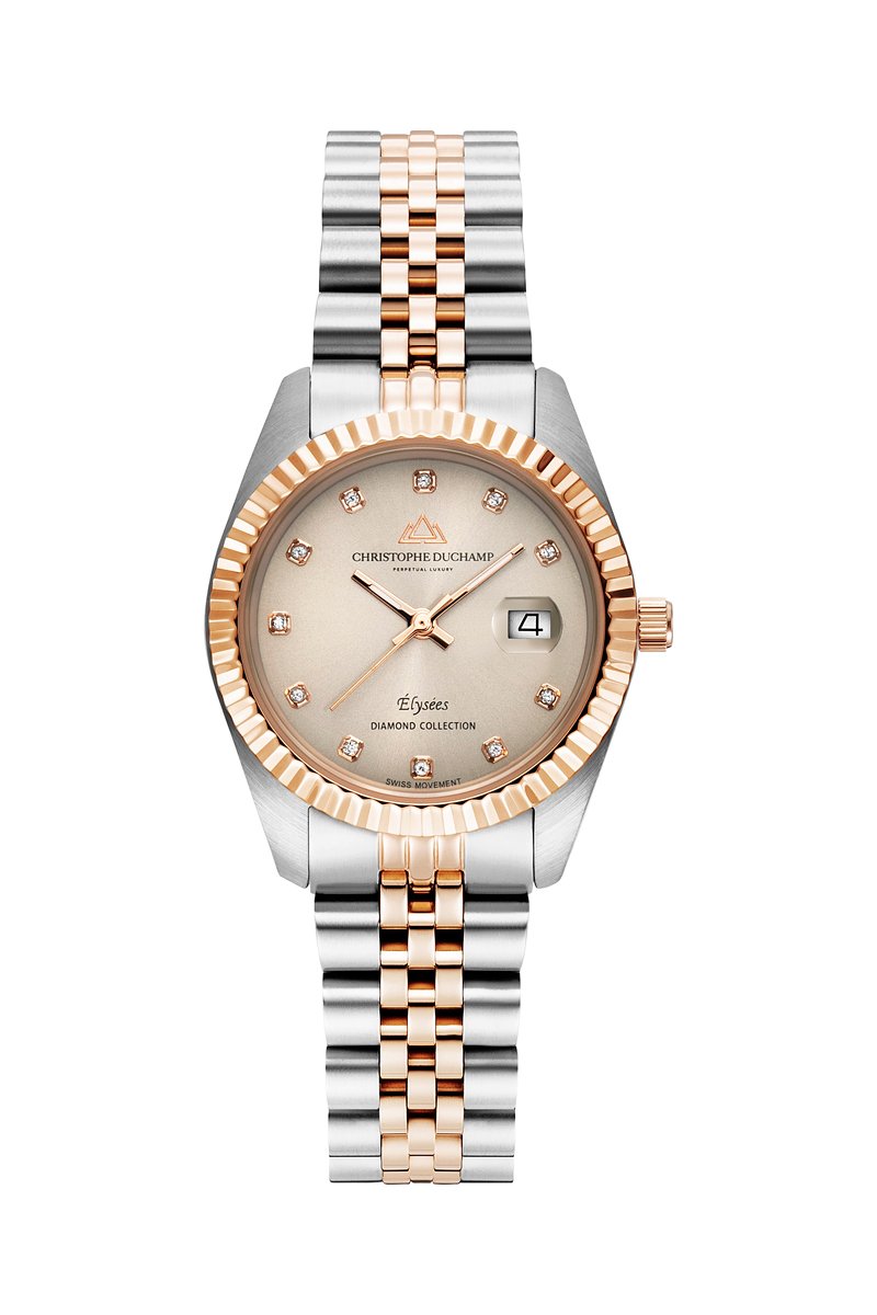 Montre à quartz en acier et diamants Elysées