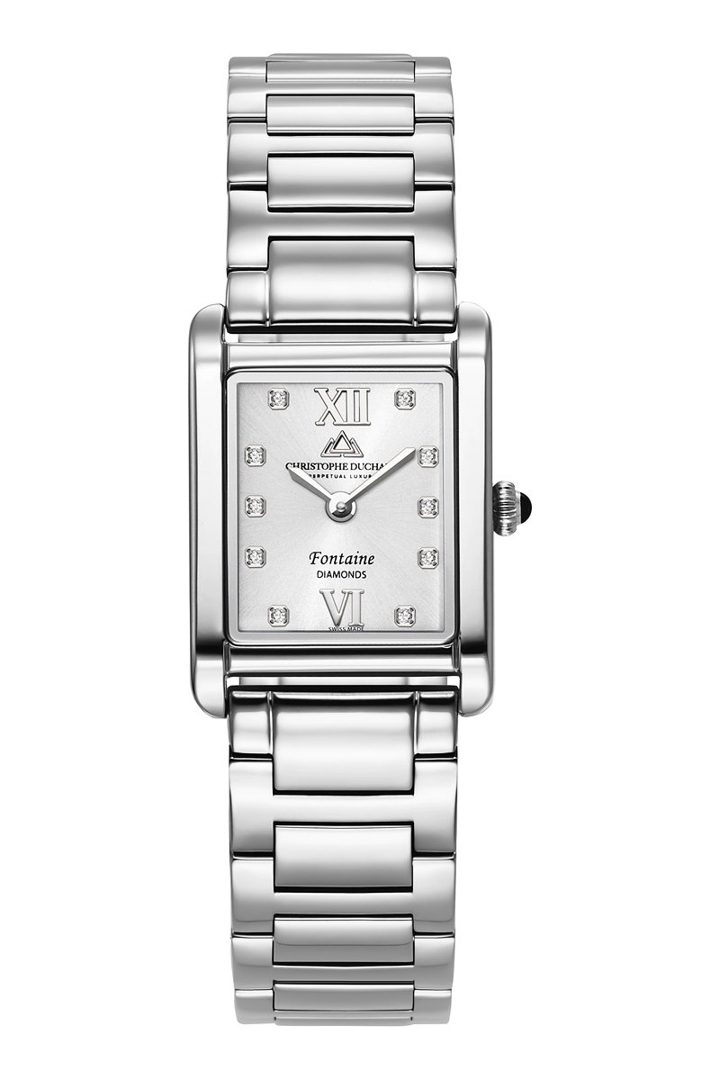 Montre à quartz en acier et diamants Fontaine